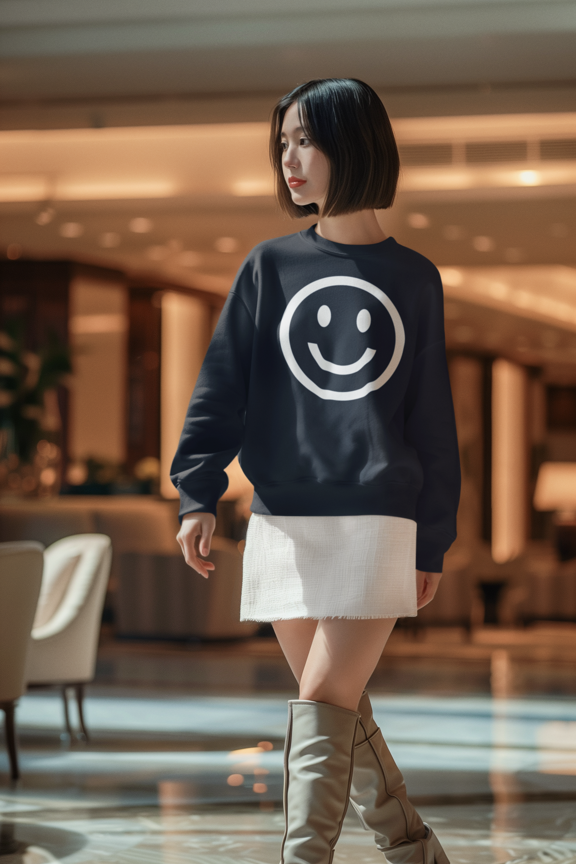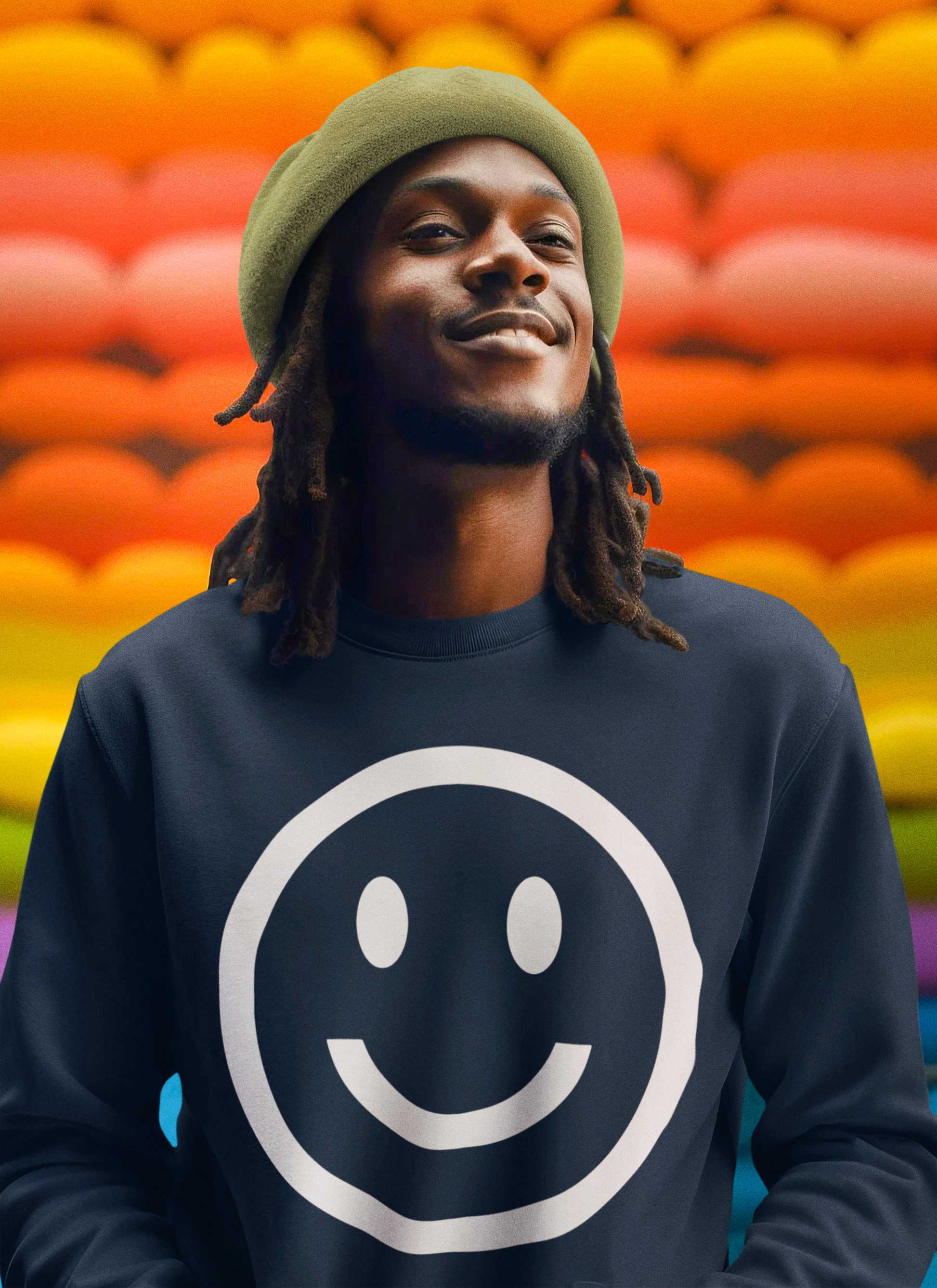 Sumérgete en un abrazo azul marino que lleva en el pecho una sonrisa tan grande como tus mejores días. La sudadera BIG HAPPY no es solo una prenda, es un recordatorio suave y con mucho estilo de que la vida se vive mejor con una sonrisa enorme y un corazón ligero.